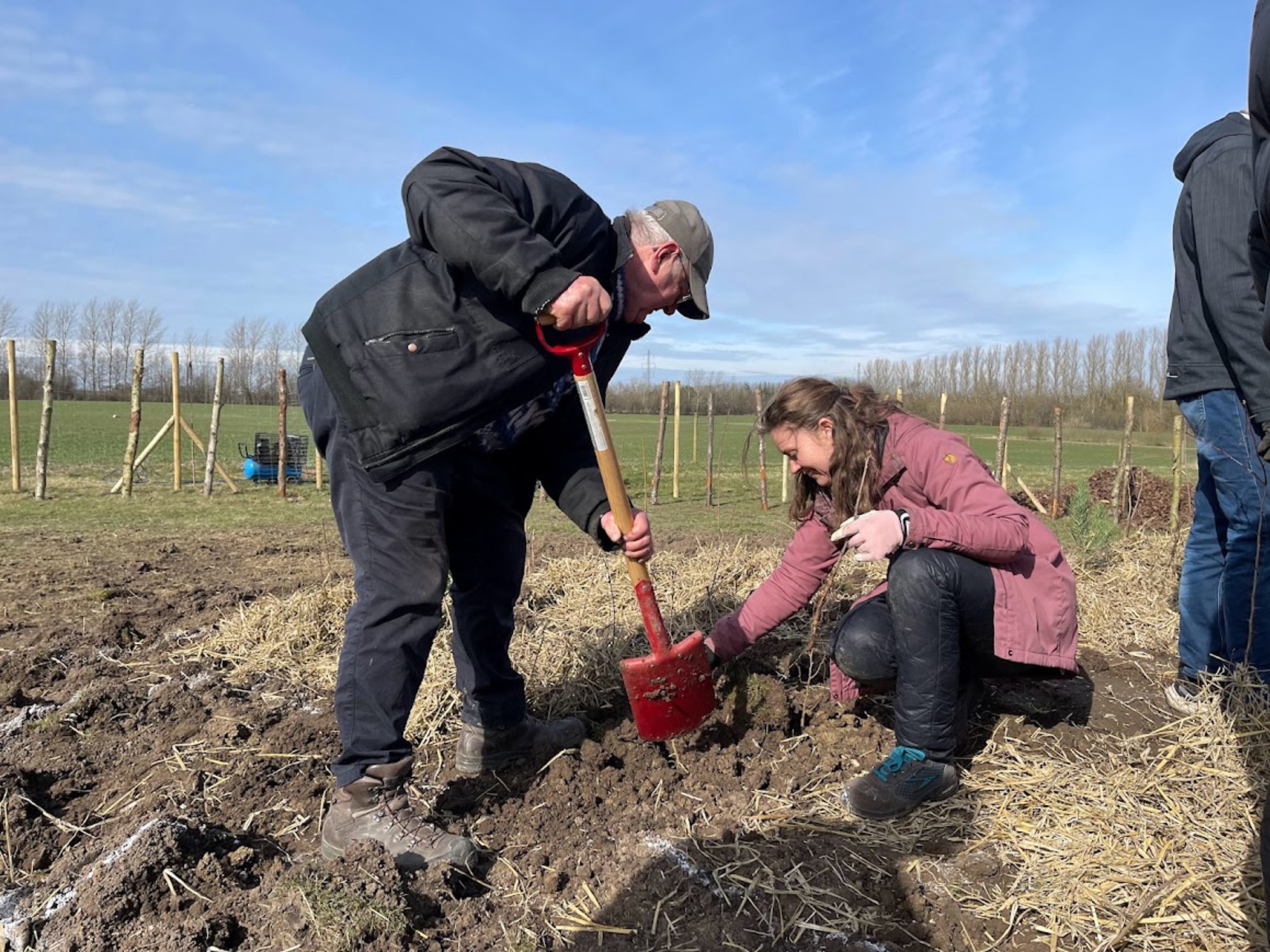 Mens eleverne fra 7. klasse plantede træer i Q4, ordnede FGU-eleverne det næste plantefelt, nemlig Q1, efter at en gravemaskine havde vendt tørven med rodsiden opad.