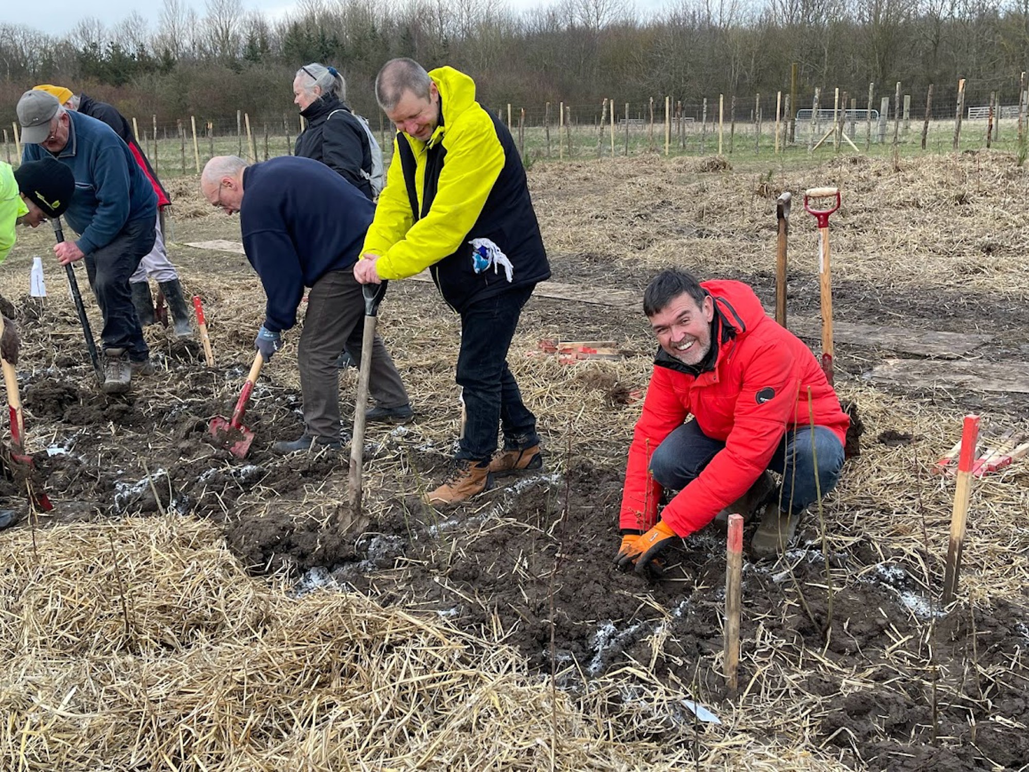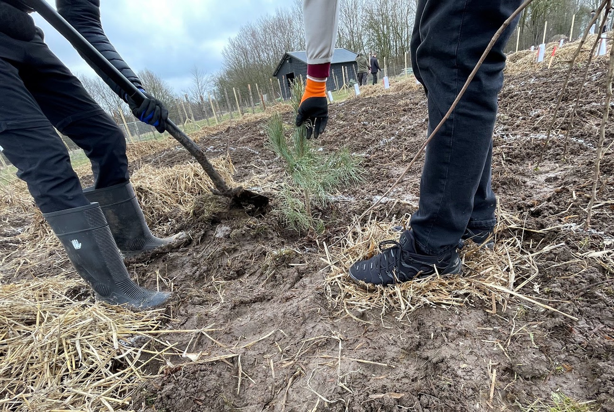 Vi afholdt sidste plantesession som et fyraftensmøde, hvor der først var en forfriskning, så en kort instruks og derefter blev det sidste skovfelt, Q3, plantet til på ingen tid!
