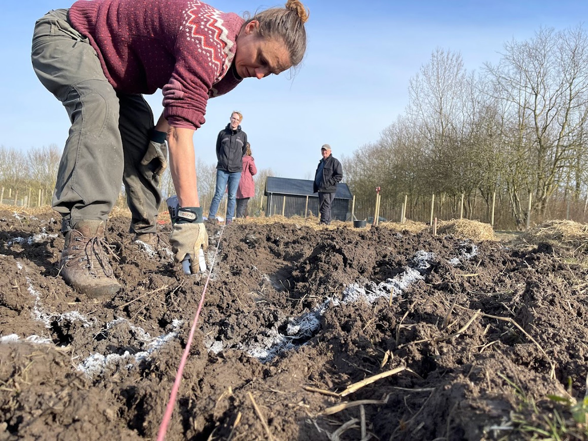 Næste portion jord blev lagt ud og vendt med hestemøg.